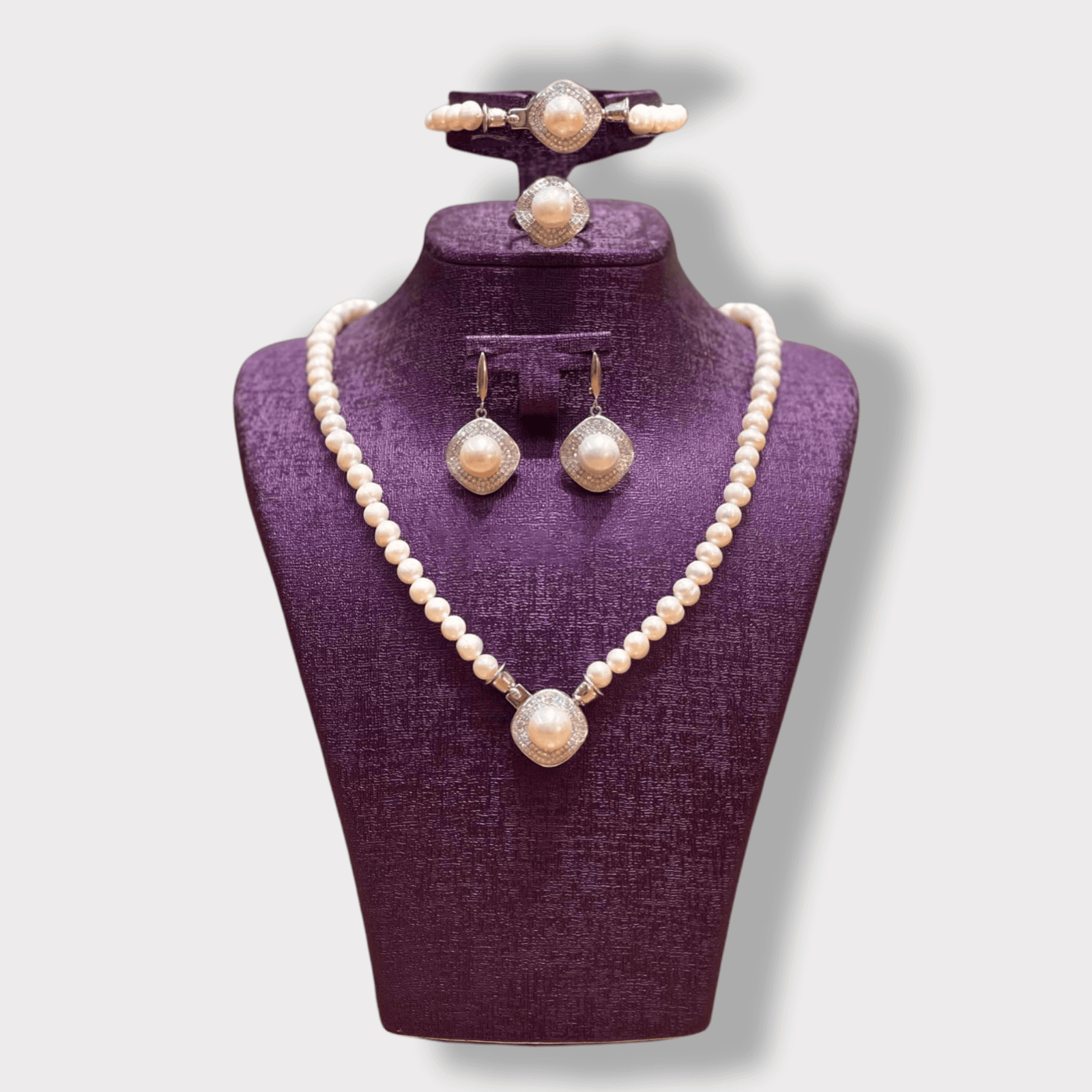 4-Piece Jewelry Set for Women, White Color Pearl –Matching Necklace & Earrings Set, Special Occasions