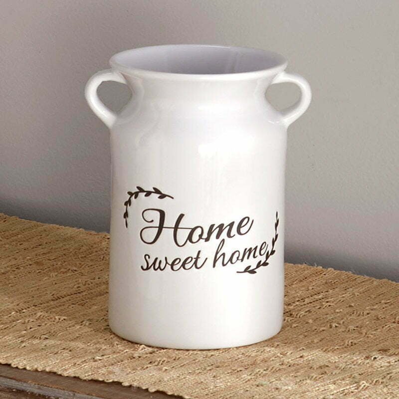 Find unique home decor accents in our Flower Market Collection. The Enamel Bucket Wall Hanging makes a great statement piece. It features 3 hanging buckets to fill with your own faux greenery and 3 faucets which seem to be watering the faux plants. Flower Wall Hooks have 3 flowers and 3 hooks. Metal Wall Flowers are available in Small and Large. Each pink flower is accented with gold at the edge of the petals and in the flower’s center. The Ceramic Vase reads, “Home Sweet Home.” Fill it with your own fresh or faux flowers.