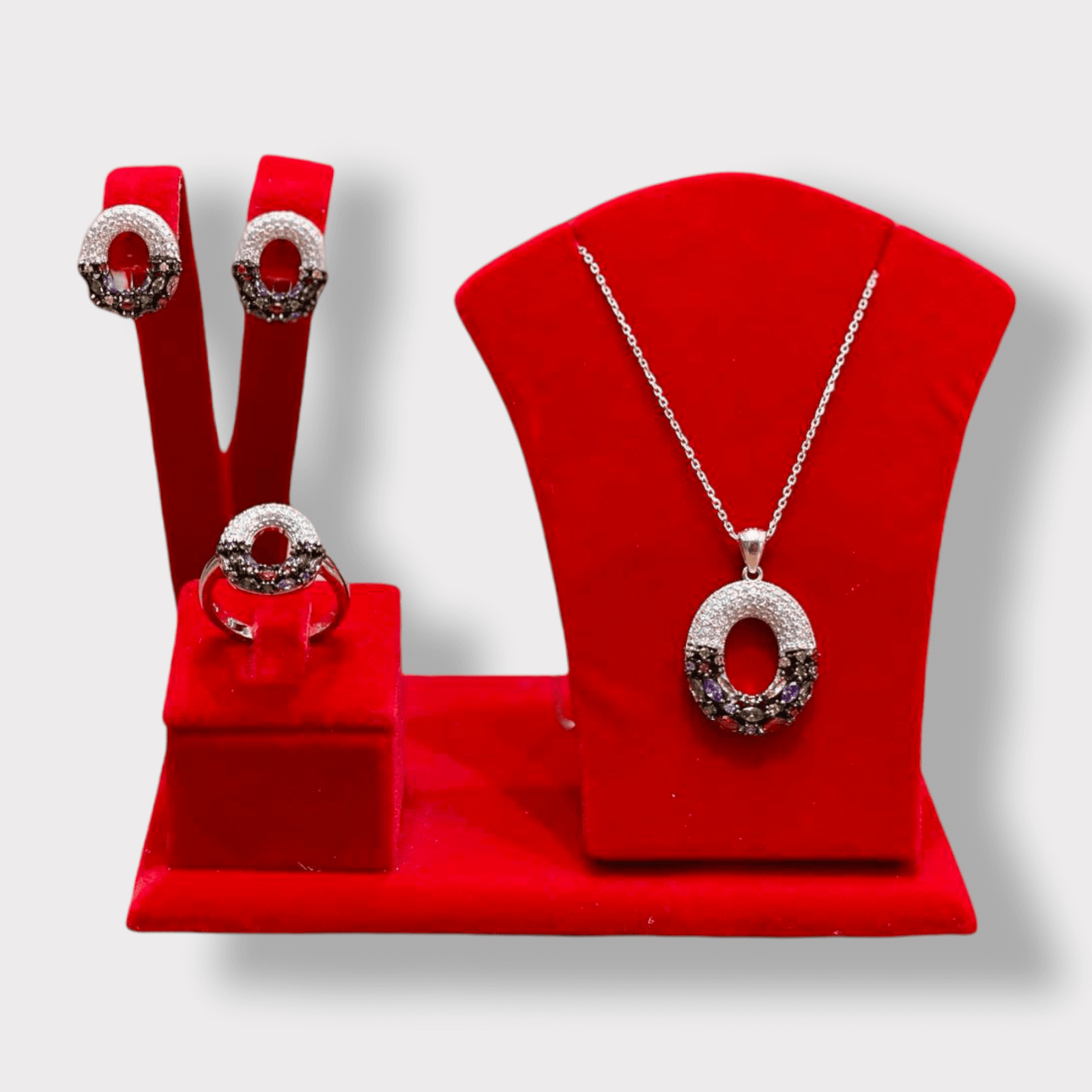 Pretty Silver 3 piece Bridal Jewellery set with Necklace, Earrings, Ring, Contemporary Jewelry Bride